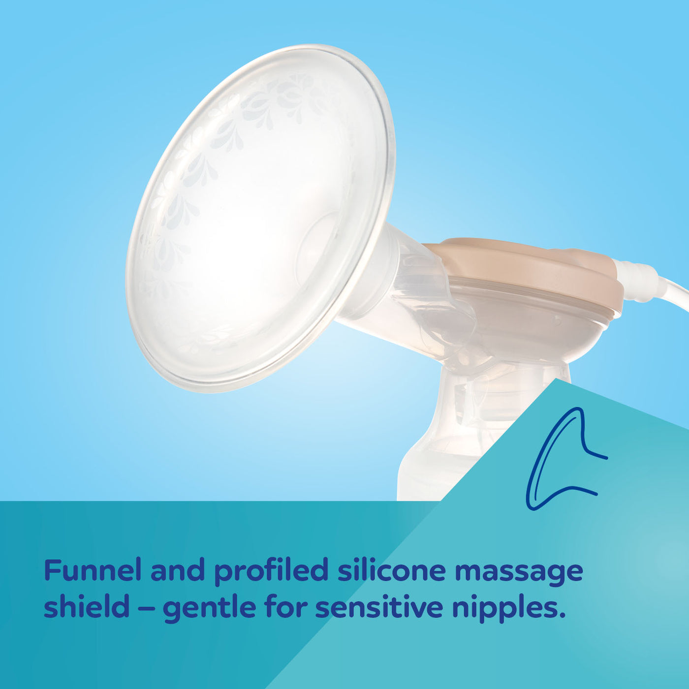 The ergonomic shape of the funnel adapts to different breast shapes so that the milk expression process resembles the natural one. The funnel with a soft, profiled massage shield made of delicate silicone does not irritate sensitive nipples and increases comfort during milk expression. The breast pump is equipped with a clear display that informs about the mode, power level and battery charge level. The touch control panel is easy to use and remembers the last used settings.