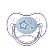 "NEWBORN BABY Soother is made of the highest quality, odourless silicone. It comes with symmetrical shape nipple. Ensures easy breathing and swallowing of saliva. The soother is well vented thanks to special ventilation holes on the shield. It is BPA free. Available in several colours. Suitable for children aged 6m+.